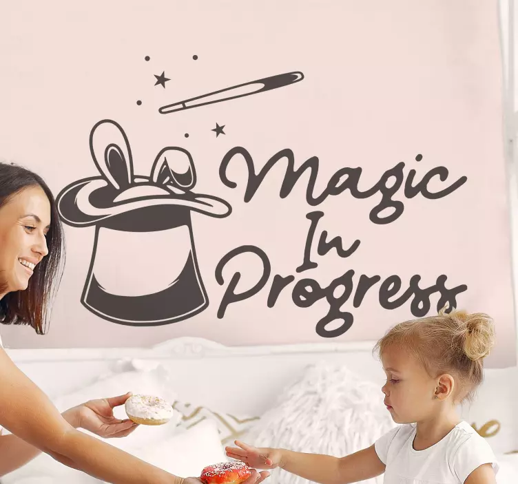 Dette er en selvklæbende mærkat med en illustration af en kanin, der udstråler magi. Mærkatet er designet med tekst og dekorative træk, der gør det til en unik indretning til børnesoveværelset. Den er holdbar og virkelig enkel at påføre på overfladen, og der er forskellige størrelser til rådighed for designet på marken.