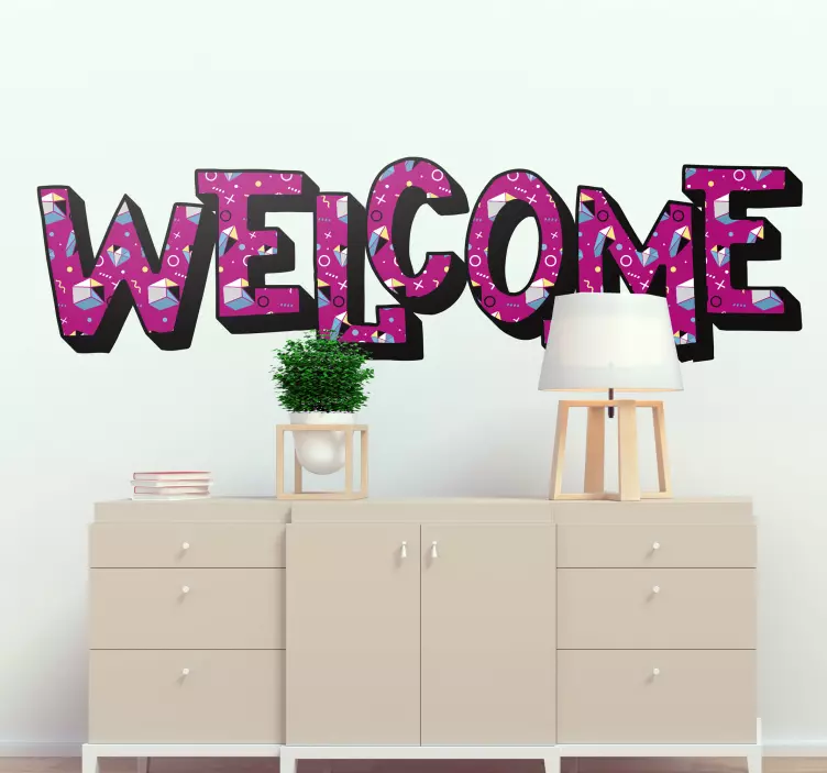 Reference: A18290Velkommen hjem med Memphis stil vægklistermærke
