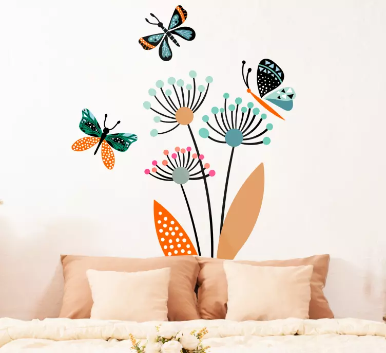 Et Natur klistermærke farverige blomster sommerfugle er den ideelle løsning til at forvandle dit rum. Dette natur klistermærke tilføjer en unik og inspirerende atmosfære, der kan løfte dit hjem til nye højder. Tænk på de glædelige øjeblikke, du vil skabe, når dine gæster beundrer det farverige design og den livlige energi, det bringer! Det er ikke bare et klistermærke, men en måde at udtrykke din personlighed og kærlighed til naturen på.