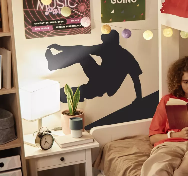Tilføj nogle handlinger til væggene i dit soveværelse i enhver farve, du ønsker, med dette parkour-vægklistermærke. Dette fantastiske actionbillede vægoverføringsbillede af den bedste ekstremsport er ideelt til at skabe en urban æstetik til ethvert rum i dit hjem eller fitnesscenter. Hvis du elsker parkour og fri løb, vil du elske dette produkt.