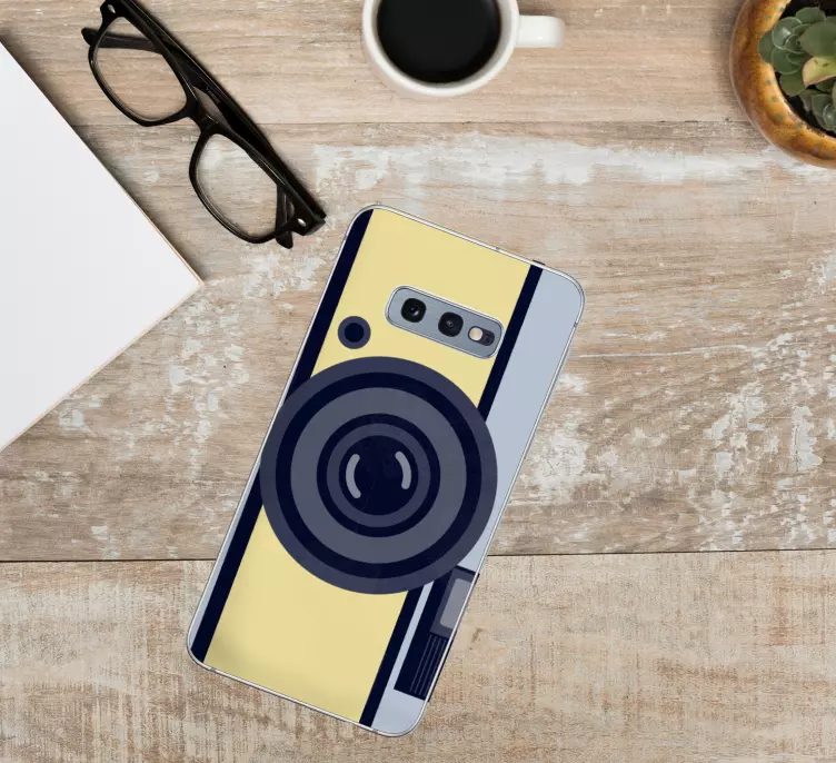 Reference: A49348Med et livligt grafisk design af et vintage kamera henvender dette design sig til fotografientusiaster. Med en blanding af gul og grå fanger det essensen af at bevare minder, hvilket gør det til et ideelt supplement for dem, der værdsætter både stil og funktion i deres tilbehør.