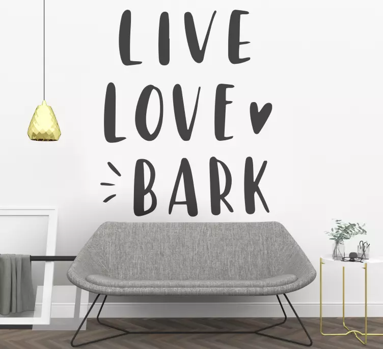 Hvis du er hundeejer eller hundeelsker, er denne hundes tekstoverføringsbillede til dig. Citatet lyder 'levende kærlighedsbark', og det vil bringe smil og glæde til dit hjem. Denne vægmærkat er perfekt til ethvert rum i dit hjem, og den kan også bruges i andre rum. Applikationen er enkel, og du kan nemt fjerne den uden at efterlade nogen rester på overfladen.