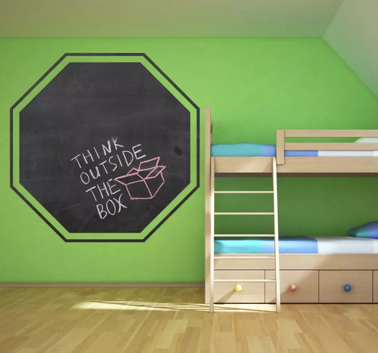 Dette originale tavlemærkat med 8 sider er perfekt til at give din væg et personligt præg. Med dette vægklistermærke kan du illustrere et stopskilt og skrive hvad som helst på det, når du vil. Det er en enkel og stilfuld måde at tilføje en unik touch til ethvert rum i dit hjem eller på kontoret.