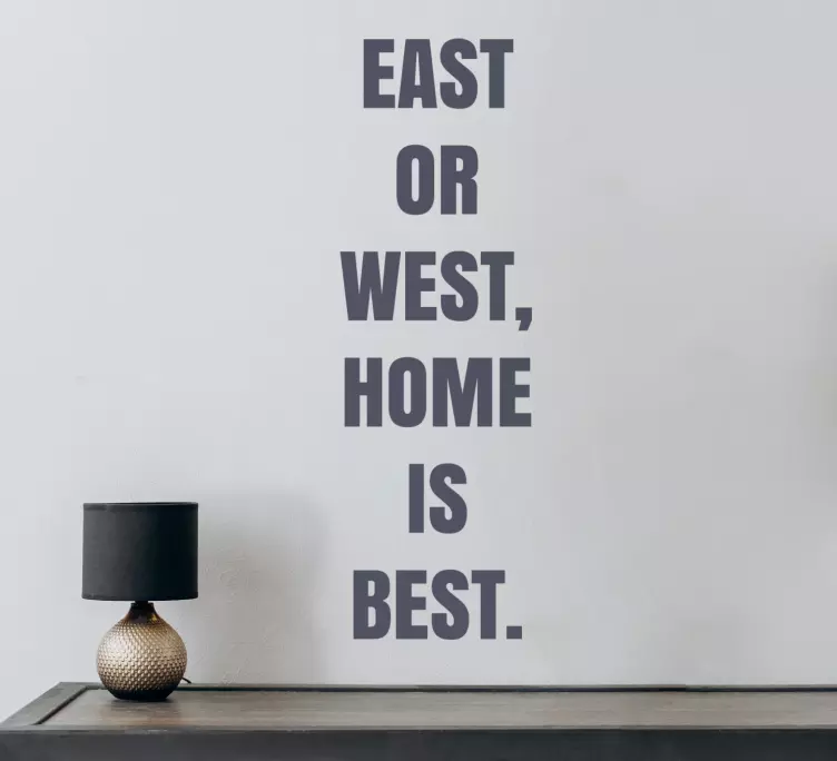 Oplev den fantastiske Tekstklistermærke haven af komfort, hvor grafisk design møder inspirerende ord. Dette klistermærke prydes af ord som øst, vest, hjem, bedst, citere og komfort, hvilket gør det til et perfekt valg for dem, der ønsker at tilføre deres rum en personlig og varm atmosfære. Med sin satinfinish sikrer dette klistermærke, at du kan nyde farvernes intensitet uden blænding fra lys, hvilket gør det ideelt til både indendørs og udendørs brug.