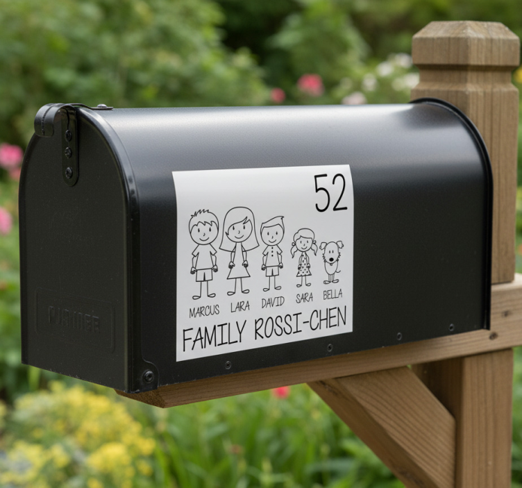 Et Tilpasses klistermærke familie billede til postkasse er den perfekte måde at tilføje et personligt præg til din indgang. Det gør det ikke kun lettere for postbudet at finde din postkasse, men skaber også en varm og indbydende atmosfære for besøgende. Med muligheden for at tilpasse designet kan du sikre, at det passer perfekt til din families stil og personlighed. Gør din postkasse til et unikt udsmykningselement, der skiller sig ud i nabolaget!