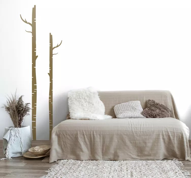 This is a simple hand-drawn silhouette tree design, a birch tree with small branch illustrations, that would create a soothing forest landscape in the rooms of your home, office, or anywhere else. It's a perfect addition to any space.