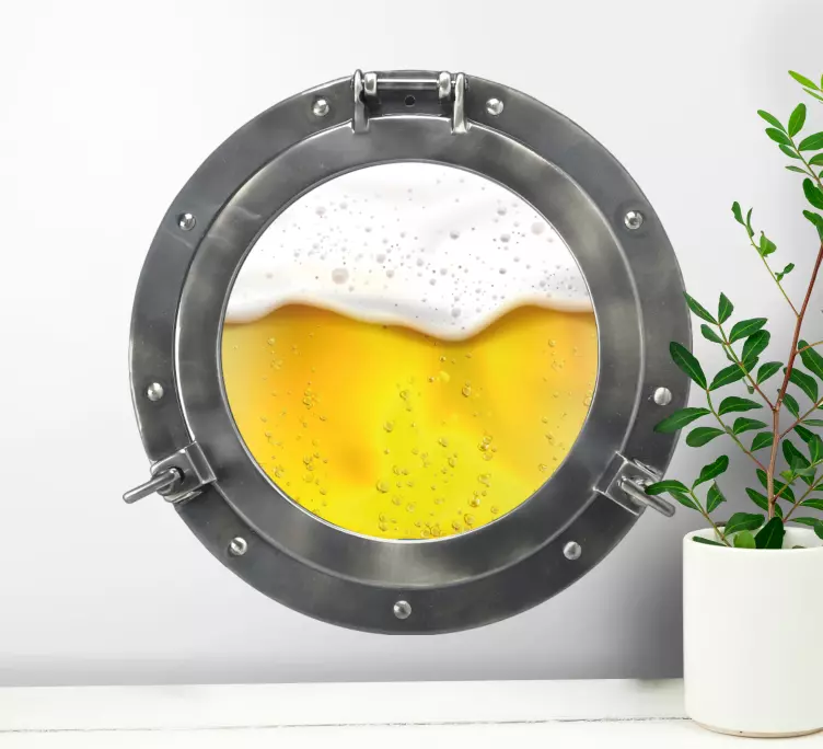 Ubådsvindue med øl inde i tapetmærkat