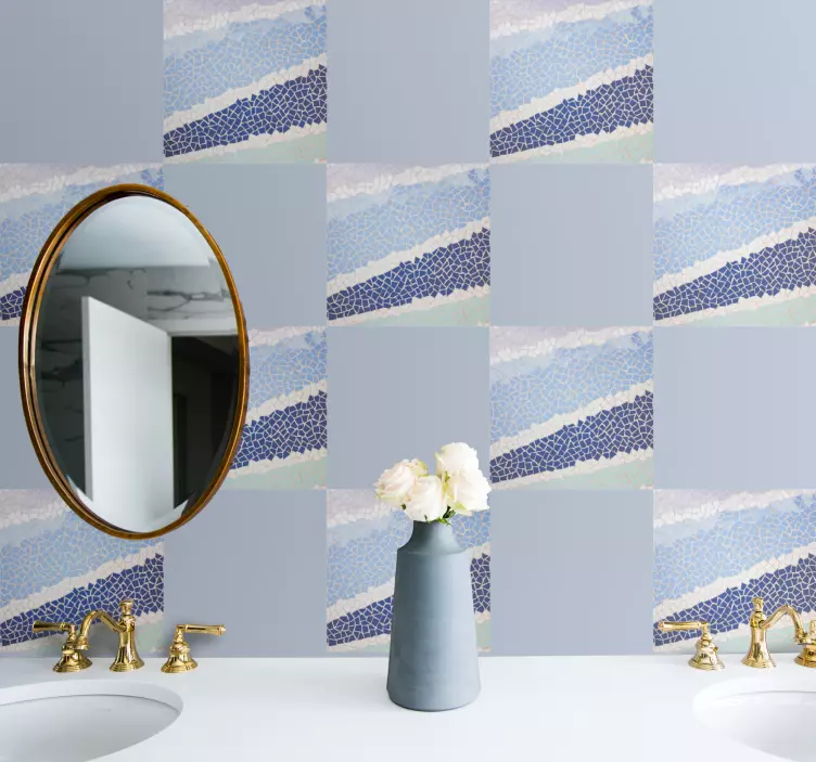 Oplev den unikke charme i vores Wallsticker dyr abstrakt mønster mosaik, som kombinerer et grafisk design med en betagende mosaik af blå toner og geometriske former. Dette teksturerede design bringer liv til dit interiør og tilføjer en elegant stemning med sine bølger og fliser, der fanger øjet og skaber en harmonisk atmosfære. Det er den perfekte løsning til at forvandle ethvert rum til et kunstværk!