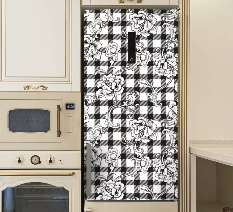 Oplev den unikke Wallsticker dyr blomstret ternet mønster, der med sit grafiske design kombinerer blomstret og ternet mønster i en stilren sort og hvid farve. Denne elegante dekoration er perfekt til at forvandle dit køleskab til et kunstværk, der vil fange opmærksomheden fra alle i dit hjem!