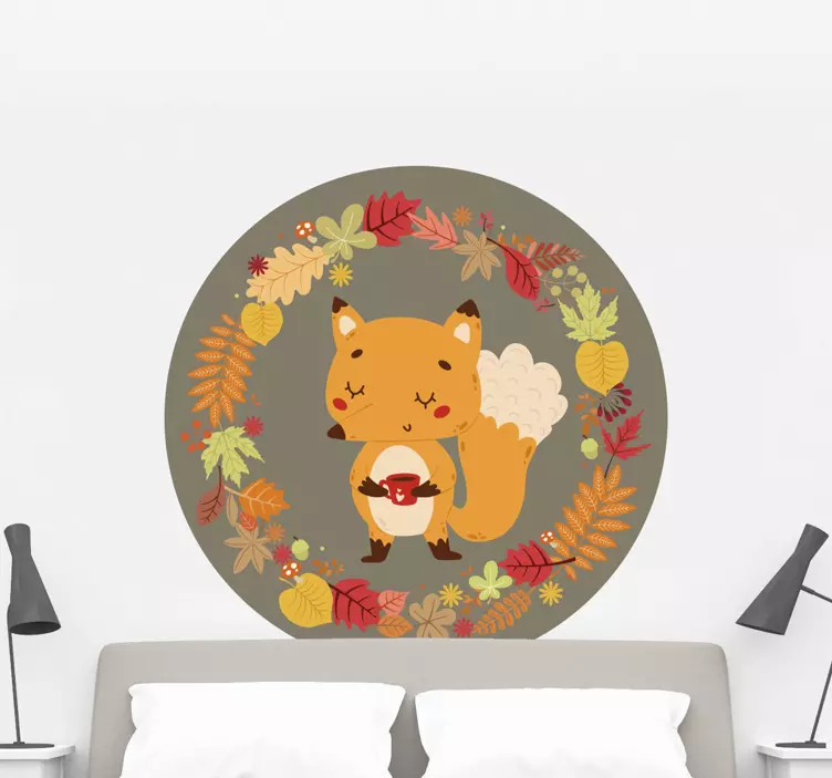 Oplev vores fantastiske Wallsticker dyr charmerende ræv skulptur, der bringer liv og farve ind i dit hjem! Dette unikke design kombinerer en sød ræv i tegnesiestil, indrammet af en krans af faldende blade, der fanger essensen af efteråret. Med detaljerede elementer som vildt dyr og skov, tilføjer denne wallsticker en charmerende atmosfære, der vil glæde både børn og voksne!