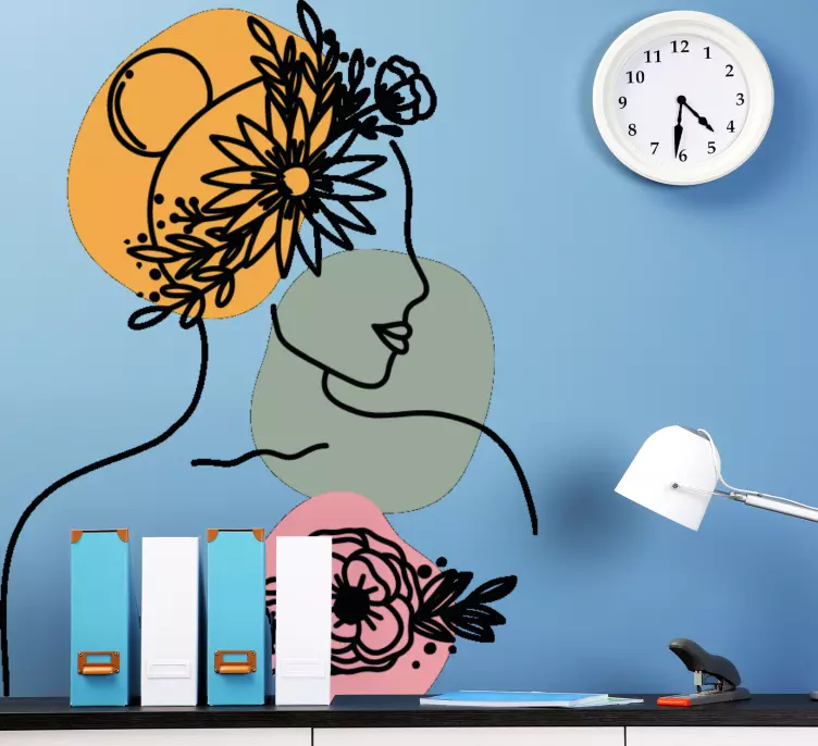 Oplev den stilfulde Wallsticker dyr elegant kvindesilhuet, som bringer en grafisk elegance til dit hjem. Dette design kombinerer en kvindesilhuet med et smukt ansigt, der er skabt i lineart stil. Den abstrakte form er omfavnet af blomster, der giver et blomsteret portræt i en minimalistisk tilgang. Med denne vægdekoration kan du tilføje et kunstnerisk præg til ethvert rum!