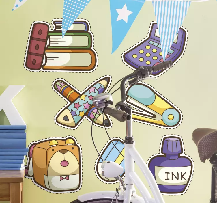 Opdag vores unikke Wallsticker dyr med farverige kontorikoner, der tilfører et legende og farverigt præg til ethvert rum! Designet er grafisk inspireret af tilbage til skolen-temaet og kombinerer doodle-illustrationer med uddannelsesmæssige papirvarer. Denne farverige vægdekoration vil forvandle dit rum til et kreativt fristed, hvor både børn og voksne kan føle sig inspirerede!