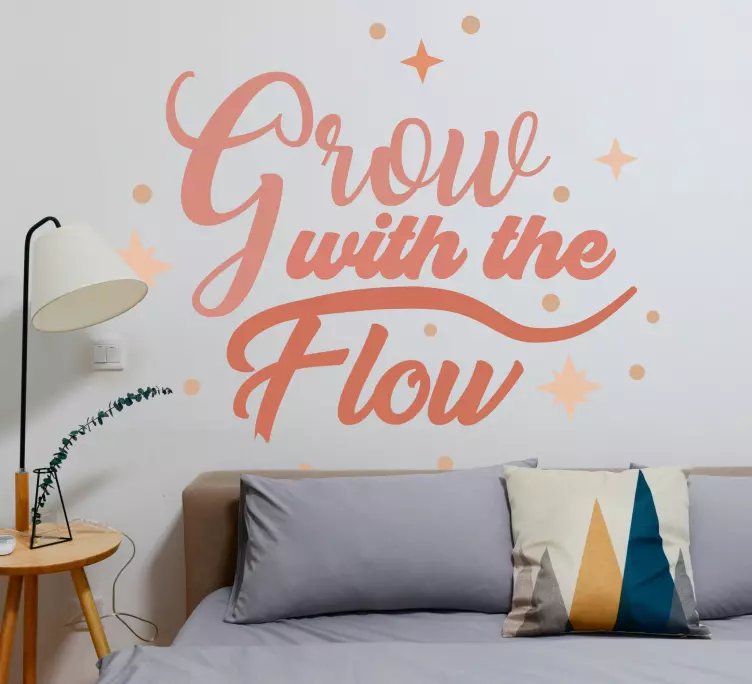 Reference: A48436Med fokus på personlig vækst kombinerer dette stykke elegant typografi med charmerende stjernemotiver. Sætningen opfordrer til tilpasningsevne og positivitet, hvilket gør det perfekt til et roligt opholdsområde. Skriften flyder graciøst og inviterer til refleksion og inspiration for alle, der ser det.