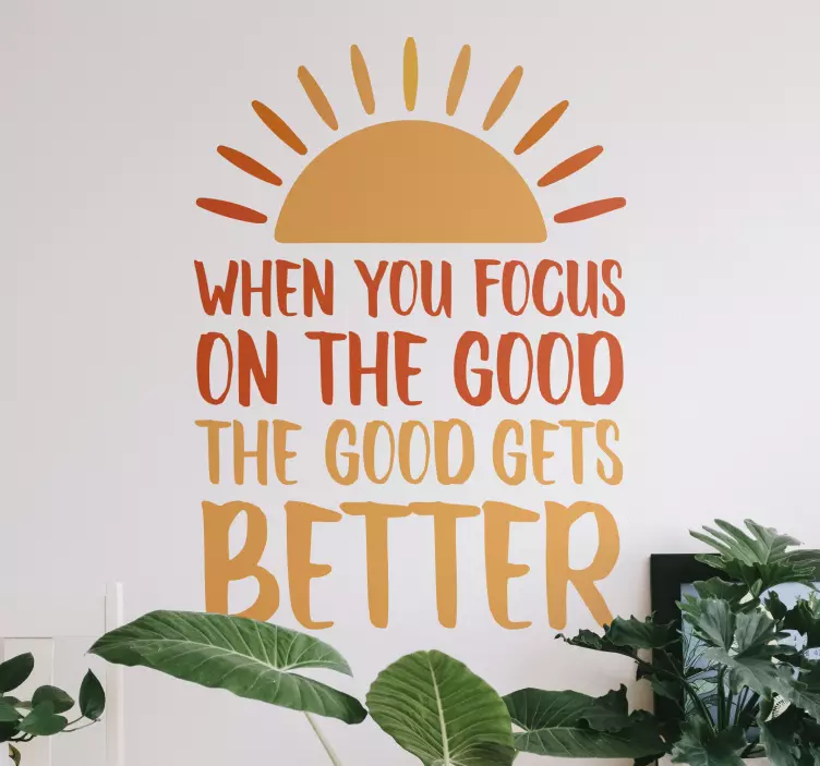 Reference: A48444Et muntert citat understreger vigtigheden af positivitet. Med solmotiver opfordrer det til at fokusere på det gode i livet for bedre resultater. De varme farver udstråler optimisme, hvilket gør det til et perfekt tilføjelse til opløftende rum.