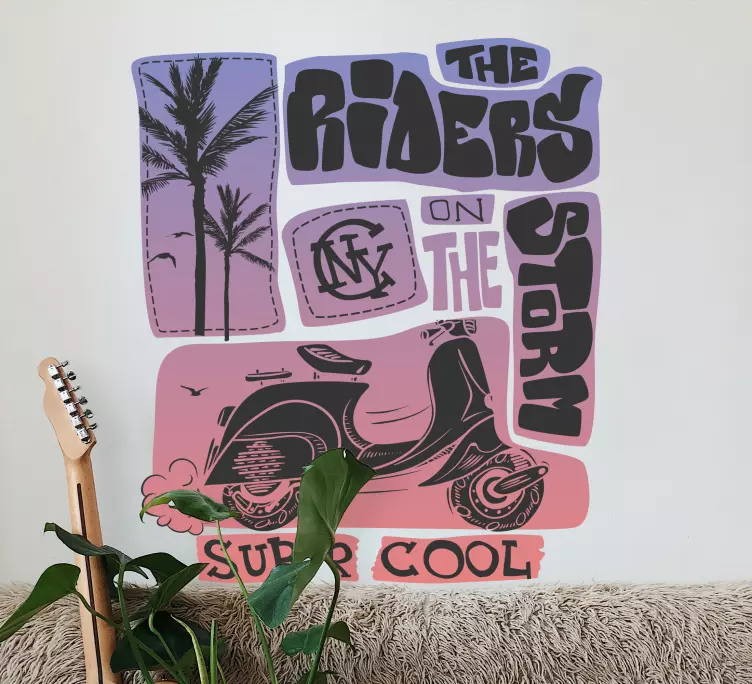Oplev den fantastiske Wallsticker dyr scooter palmtræer, der bringer liv og glæde ind i dit hjem! Dette grafisk designede produkt kombinerer elementer som scooter, sommer vibes, palmer, musik og transport i et unikt udtryk, der vil forvandle enhver væg til et festligt og inspirerende rum. Uanset om du vil skabe en afslappet atmosfære i stuen eller tilføje en sjov detalje i børneværelset, er denne wallsticker det perfekte valg!