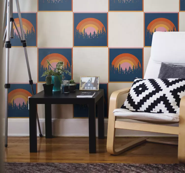 Forvandl dit hjem med vores Wallsticker dyr solnedgang i skoven, der kombinerer et betagende landskab med en smuk solnedgang. Dette grafiske design udstråler skønheden i naturen med dets varme farver og inspirerende motiv, hvor solen stråler ned over en frodig skov. Vores wallsticker fanger essensen af en perfekt aften i skoven, hvor farverne spiller sammen og skaber en beroligende atmosfære.
